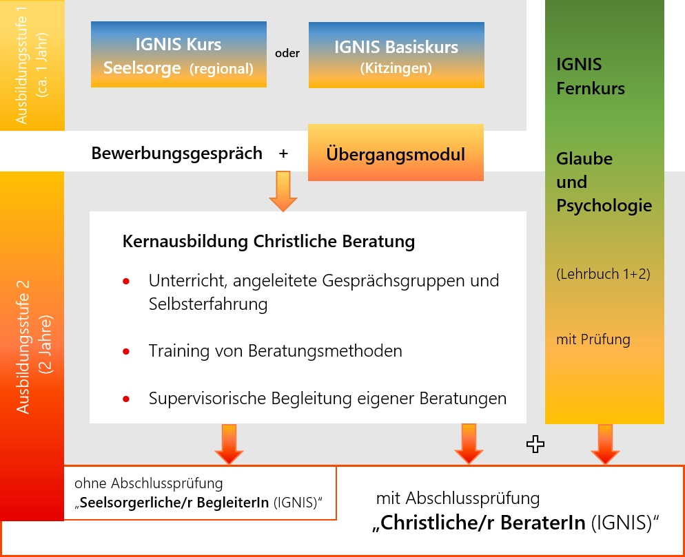 Die Ausbildung Christliche Beratung (IGNIS) beginnen Sie mit einem IGNIS Basiskurs Seelsorge und christliche Beratung (in Kitzingen) oder einem regionalen IGNIS Kurs Seelsorge.